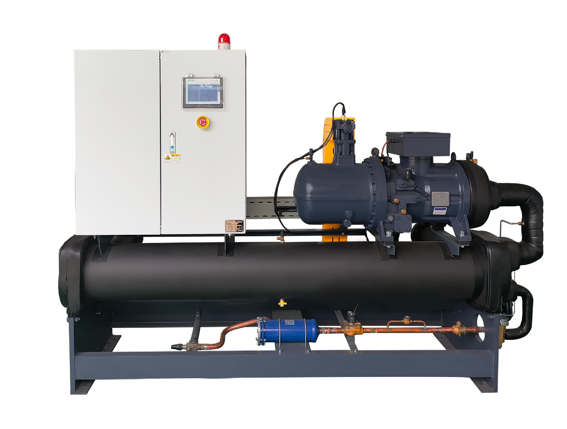 高效制冷能力:水冷螺桿冷水機能夠高效地處理大規(guī)模的熱負荷,非常適合工業(yè)用途。